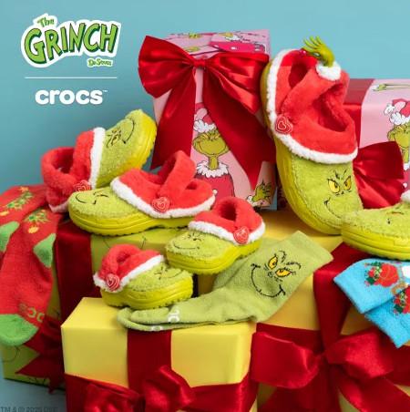 It's the Grinch! Steal the holiday spotlight this year in the new and mischievous collection featuring cozy clogs, socks, and Jibbiz™ charms. Stop by and shop!