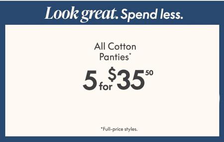 Hurry! Shop in store and get all cotton panties 5 for $35.50.